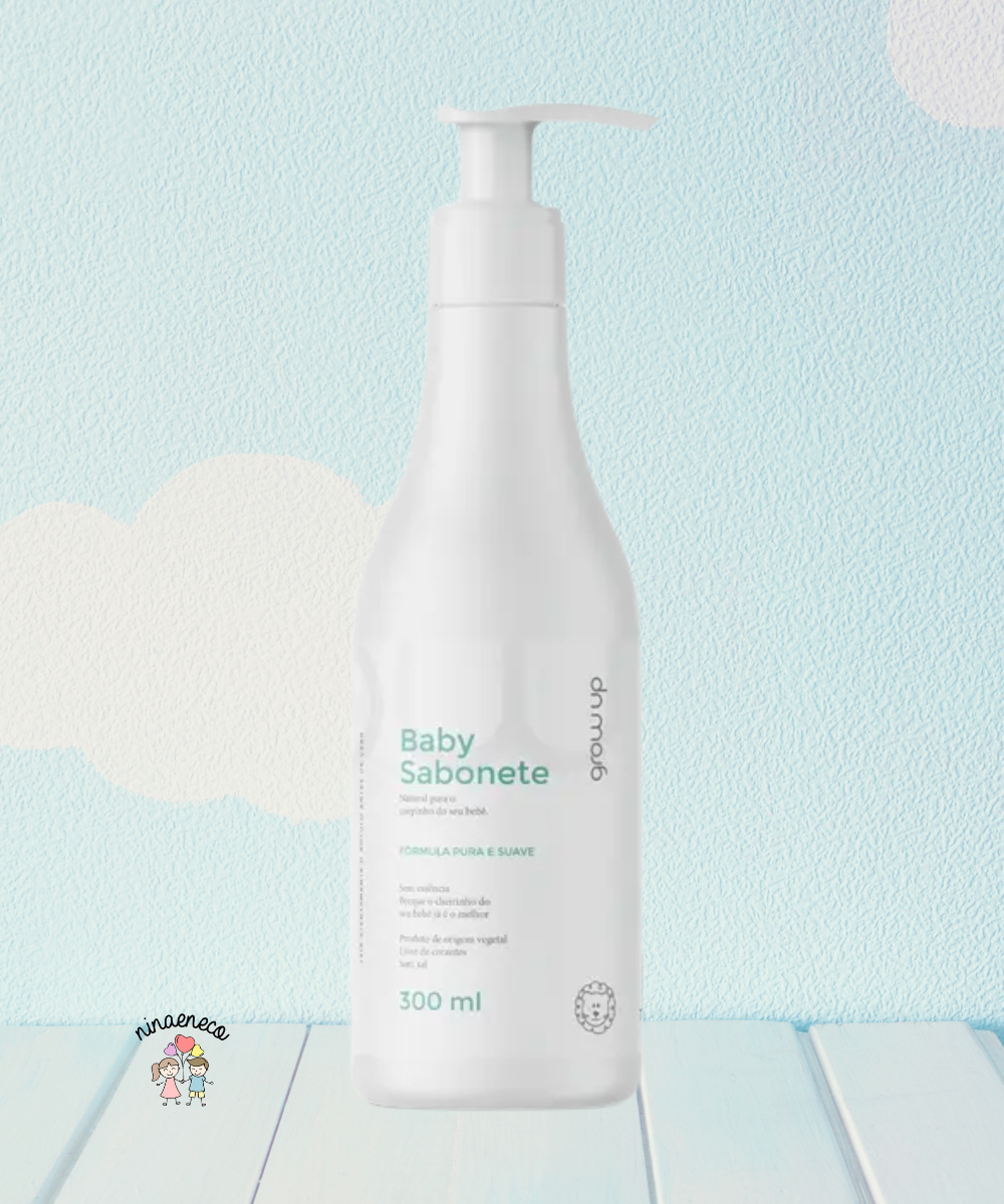 O Sabonete Líquido Baby Grow Up Care 300ml foi especialmente desenvolvido para garantir um banho delicado e seguro do bebê, da cabeça aos pés. Com ativos naturais selecionados, limpa suavemente sem agredir a pele, deixando sensação de maciez e hidratação. A fórmula é hipoalergênica, com pH equilibrado e livre de sódio, cloreto de sódio e componentes agressivos, respeitando e preservando a barreira natural da pele sensível do bebê.